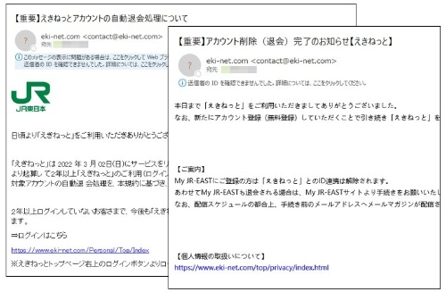 詐欺メール えきねっとアカウントの自動退会処理について と 来た件